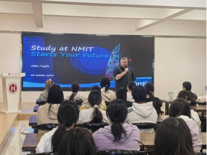 会后,凯特·尼姆副校长一行赴艺术学院观摩课堂教学,慰问本学期NMIT派驻我校的三位外籍教师,并主持召开项目说明会。国际课程主任约翰·英格里斯详细介绍了NMIT的校园环境、教学资源、入学要求、学业支持政策及视觉传达设计专业毕业生就业前景,并与项目学生进行了现场互动交流。 (通讯员 周程)