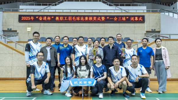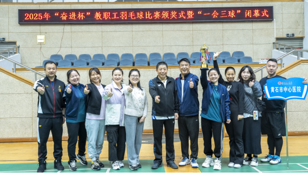 本网消息 10月30日晚,我校2025年“奋进杯”教职工羽毛球决赛在东门体育馆圆满落幕。经过四天35场紧张激烈、精彩纷呈的角逐,机关党委1队夺得团体冠军,艺术学院获团体亚军,环境科学与工程学院获团体季军,师范学院、土木建筑工程学院、机关党委2队、校直属附属医院(黄石市中心医院)、机电工程学院分获团体第四至第八名,体育部教练组获“特别贡献奖”。