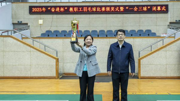 刘兰青在闭幕式致辞中充分肯定本届赛事,指出2025年学校“奋进杯”“一会三球”比赛延续并升华了往届的精彩,教职工参与热情持续高涨,覆盖面不断扩大。他寄语全体教职工:一是让运动成为习惯,将锻炼融入日常,以健康体魄和昂扬状态投入工作;二是让快乐常伴左右,在追求卓越的同时享受运动乐趣,为校园文化注入活力;三是让精神得以传承,把赛场上的斗志与激情转化为立德树人、推动学校高质量发展的扎实行动,在各自岗位上再立新功。