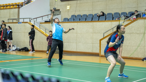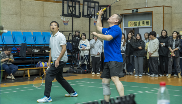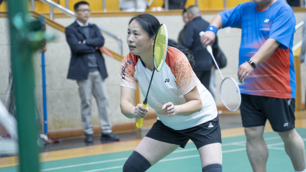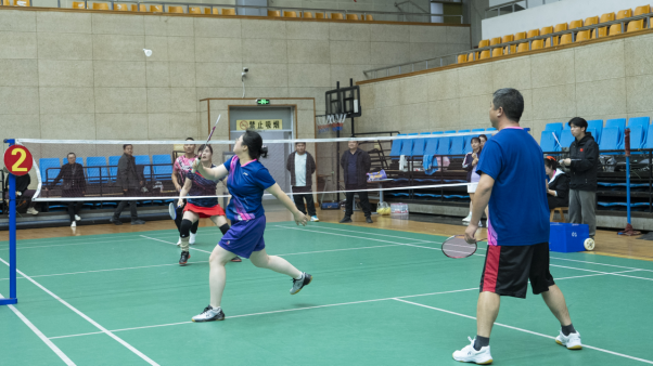 在体育部教练组持续指导并参与乙级队比赛的基础上,本次比赛在赛制上进行了新的尝试:一是把一对混双变成了“双倍混双”,这一变化显著提升了女教师的参与度,使比赛更具包容性和观赏性。二是构建了更为开放的竞赛平台,不仅邀请了校直属附属黄石市中心医院的同仁同场竞技,更迎来了宝刀未老的退休教职工“回家”参赛,新老携手,奋进同心。赛场上,凌厉的扣杀与奋不顾身的扑救交织,羽毛球划出的道道弧线,是对拼搏精神与团队情谊最生动的诠释。