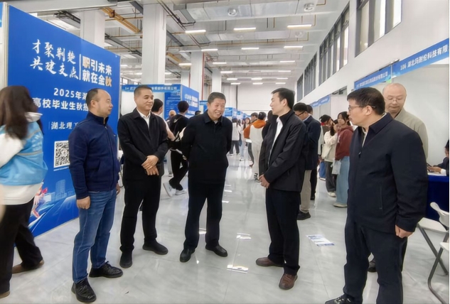 本网消息  11月1日上午,湖北理工学院“才聚荆楚、共建支点、职引未来、就在金秋”2025年湖北省高校毕业生秋招系列活动在工程实践创新中心一楼成功举办,湖北省公共就业创业指导与信息服务中心主任涂威参加活动,校党委书记张方胜到场指导。