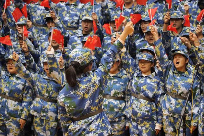 比赛过程中,各参赛队伍指挥者全心投入、手势精准有力,引领团队把握每一处节奏;演唱者精神饱满、音色和谐统一,将真挚情感融入每一句歌词;整齐统一的服装、精心编排的队形,搭配富有感染力的演绎,一次次将现场气氛推向高潮。台下观众挥舞红旗,随旋律轻轻摇摆,歌声与掌声交织,激情与梦想碰撞,整个赛场洋溢着浓厚的爱国主义氛围与蓬勃的青春气息。而这精彩的呈现背后,是教官们严于律己、身先士卒的示范,是他们与新生日夜并肩操练的付出,为队伍注入信心与力量。