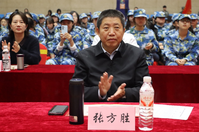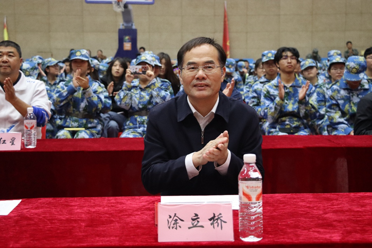 本网消息 11月6日下午,以“迷彩映初心,军歌颂山河”为主题的2025级新生军训歌咏比赛在我校东门体育馆举行。承训部队指导员姚攀、校党委书记张方胜、校党委副书记涂立桥出席活动,各职能部门负责人、各教学院党总支副书记、辅导员、在校生“教官团队”以及2025级全体新生共同参与。活动由校学工部、武装部主办,校“美工坊”辅导员工作室承办。