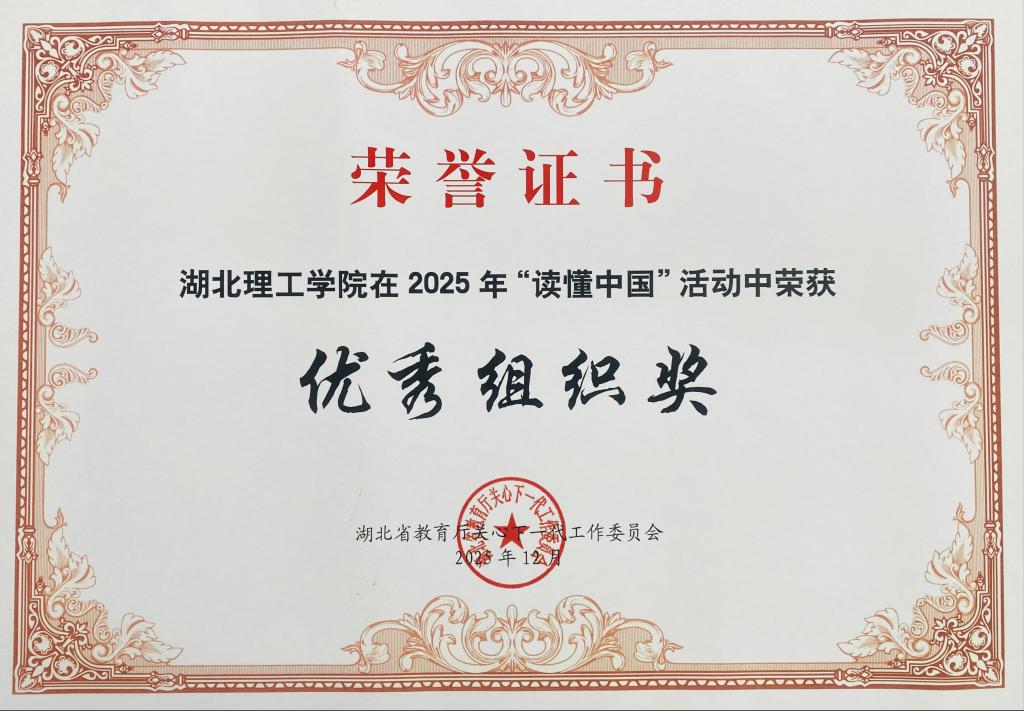 本网消息 近日,2025年湖北省教育厅关工委“读懂中国”活动获奖名单正式公布。我校关工委精心组织、积极选送,共荣获最佳征文1篇、优秀征文3篇、最佳微视频1部,学校亦获评优秀组织奖。