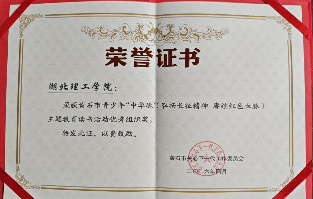 本网消息 日前,黄石市关工委发文公布2025年“中华魂”(弘扬长征精神 赓续红色血脉)主题演讲、征文比赛获奖结果,我校关工委报送作品荣获演讲类一等奖和优秀奖,征文类一等奖、二等奖和优秀奖,校关工委荣获优秀组织奖。